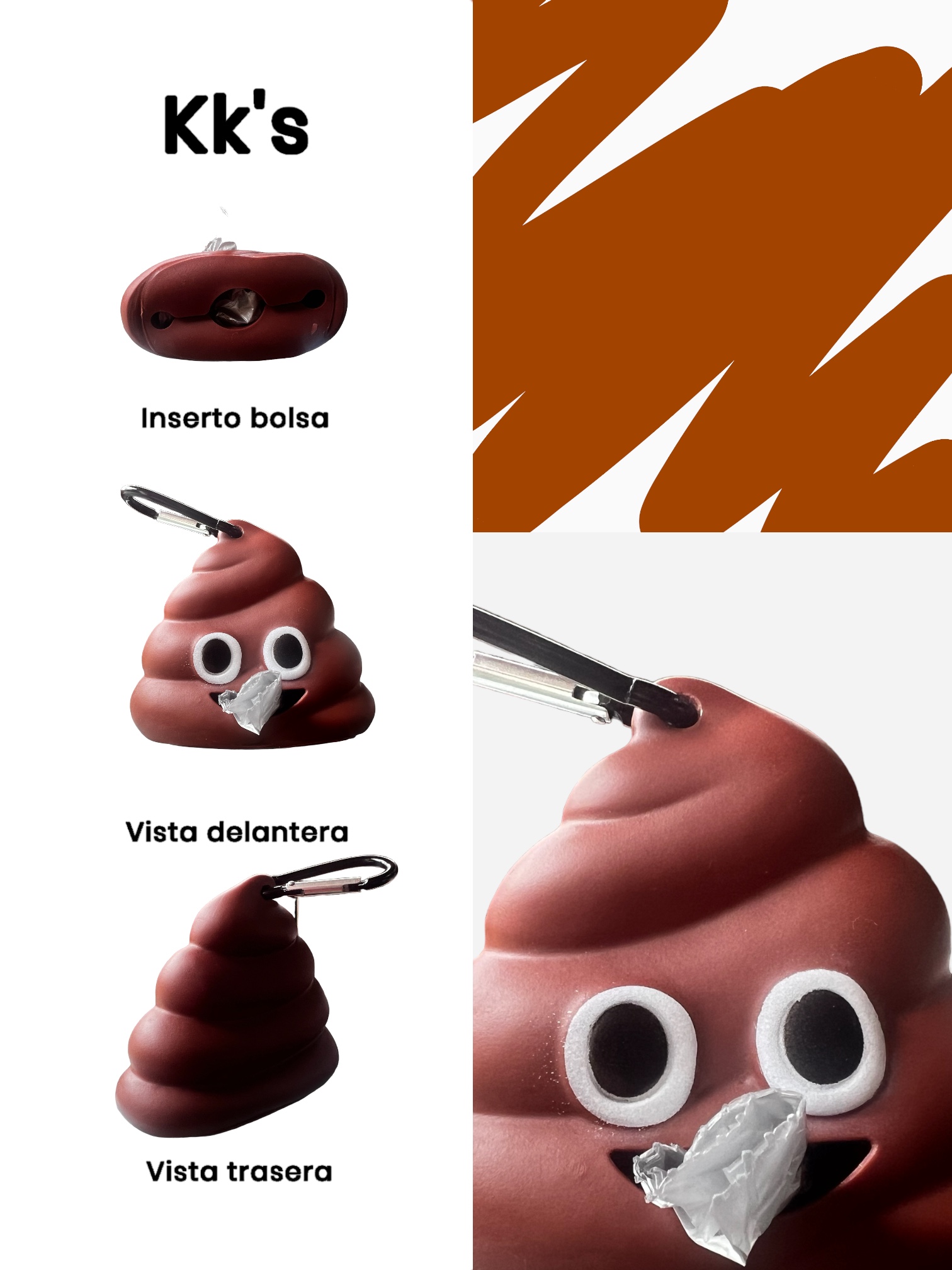 Dispensador portátil de bolsas para tu mascota con diseño de popo.